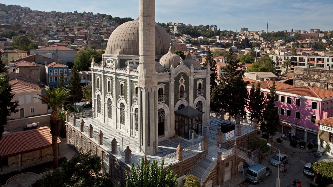 1897-1907 yılları arasında bir ‘Vakıf Eseri’ olan Salepçioğlu Camii, Hacı Ahmet Efendi tarafından İzmir Kadısı Mehmed Emin Efendi nezaretinde inşa ettirilmiştir. Fevkani; üst katı olan bu caminin malt kısmı medrese üst kısmı ibadet yeri olarak kullanılmıştır. Yapının dış cephe mimarisi ve iç kısım bezemeleri görülmeye değerdir. Kemeraltı çarşı bölgesinin en çarpıcı eserlerindendir.